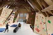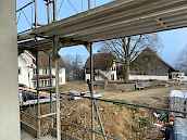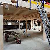 Das «Haus im Haus» sowie der 1. Stock unserer Boulderhalle stehen bereits. Im Frühling 2021 wird die Renovation des historischen Ensembles von Schöngrün – wozu der Gutshof mit der Kita, die Scheune mit der Boulderhalle sowie das Stöckli zählen – fertig sein.