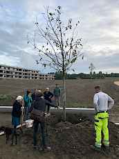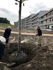 Ein Kastanienbaum lädt künftig neben der Terrasse des Generationenhauses zum Verweilen im Schatten ein: Vor Kurzem durften die Bewohner*innen bei der Pflanzung mithelfen.